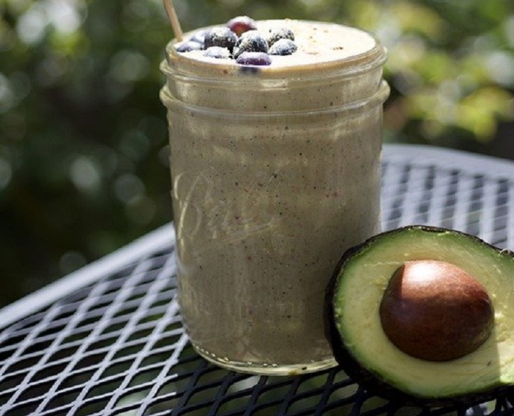 هذا عصير سهل التحضير، أولاً، اخلطي الكرز المجمد ثم أضيفي التوت الأزرق. بعد الانتهاء من فرمها، أضيفي نصف أفوكادو مع كوب من حليب اللوز واستمري في الخلط حتى يصبح عصيرك غنيًا وسلسًا وجاهزًا للشرب.
