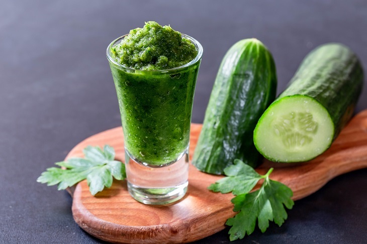 يُمزج القرنبيط والبطيخ والخيار جيدًا في محضر الطعام. ثم أضيفي أوراق النعناع ونصف كوب ماء. يُسكب في كوب من الثلج المجروش و 2 ملاعق من العسل ويستمر التحضير. يمكن إضافة ملعقة كبيرة أخرى من العسل حسب الرغبة وتقديمها باردة.