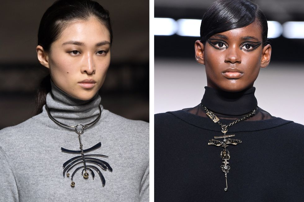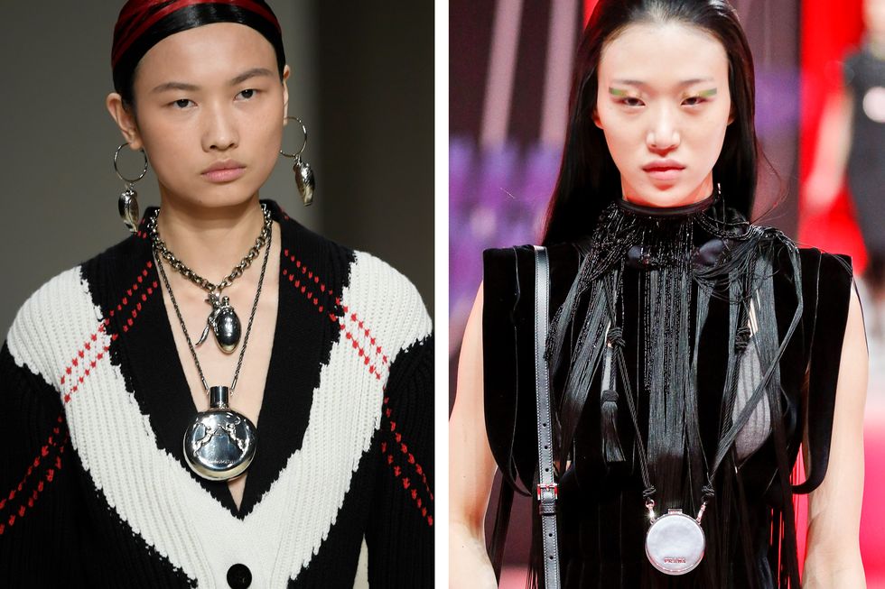 من اتجاهات الموضة التي قدمها ألكسندر ماكوين هي القلادات التي تستطيعين استخدامها كحقائب ومن الممكن أن تضعي فيه حاجياتك الصغيرة مثل احمر الشفاه.