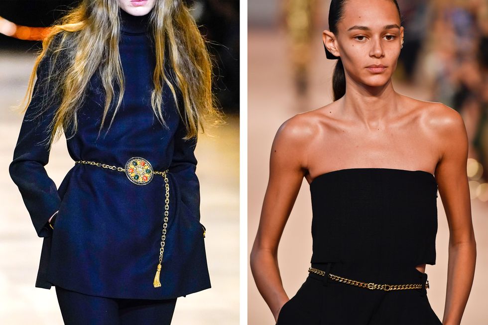 ظهرت موضة حزام السلسلة على جميع مدرجات الموضة ومن المتوقع أن تسود هذه الموضة بقوة في خريف هذا العام لأنها تضفي كلاسيكية وأناقة على الإطلالات خاصًة داكنة اللون.