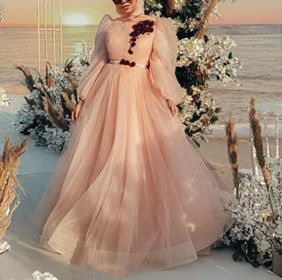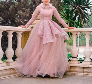 عاشقات البينك أين أنتم؟ هذا الفستان من فساتين أميرات ديزني وسنوايت، مميز وأنيق مناسب للمناسبة نهارية ومسائية أيضاً، نسقت هنا العارضة الفستان بشكل بسيط، فقد اعتمدت حجاب باللون البينك وبدت في غاية النعومة.