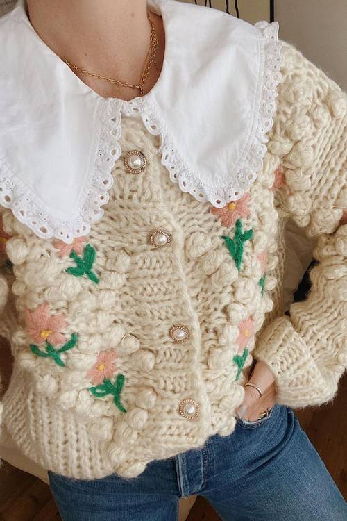 هذه الاطلالة بسيطة ومريحة وغير مكلفة، ارتدِ سترة صوفية بالياقة البيضاء الكبيرة المميزة مع سروال من الجينز وانطلقي للتنزه مع اصدقائك.