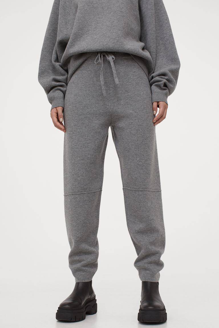هذه الإطلالة مناسبة للتنزه والصالات الرياضية ارتدي سويت بانتس وسترة صوفية خفيفة من نفس اللون وأحذية سوداء عريضة النعل.