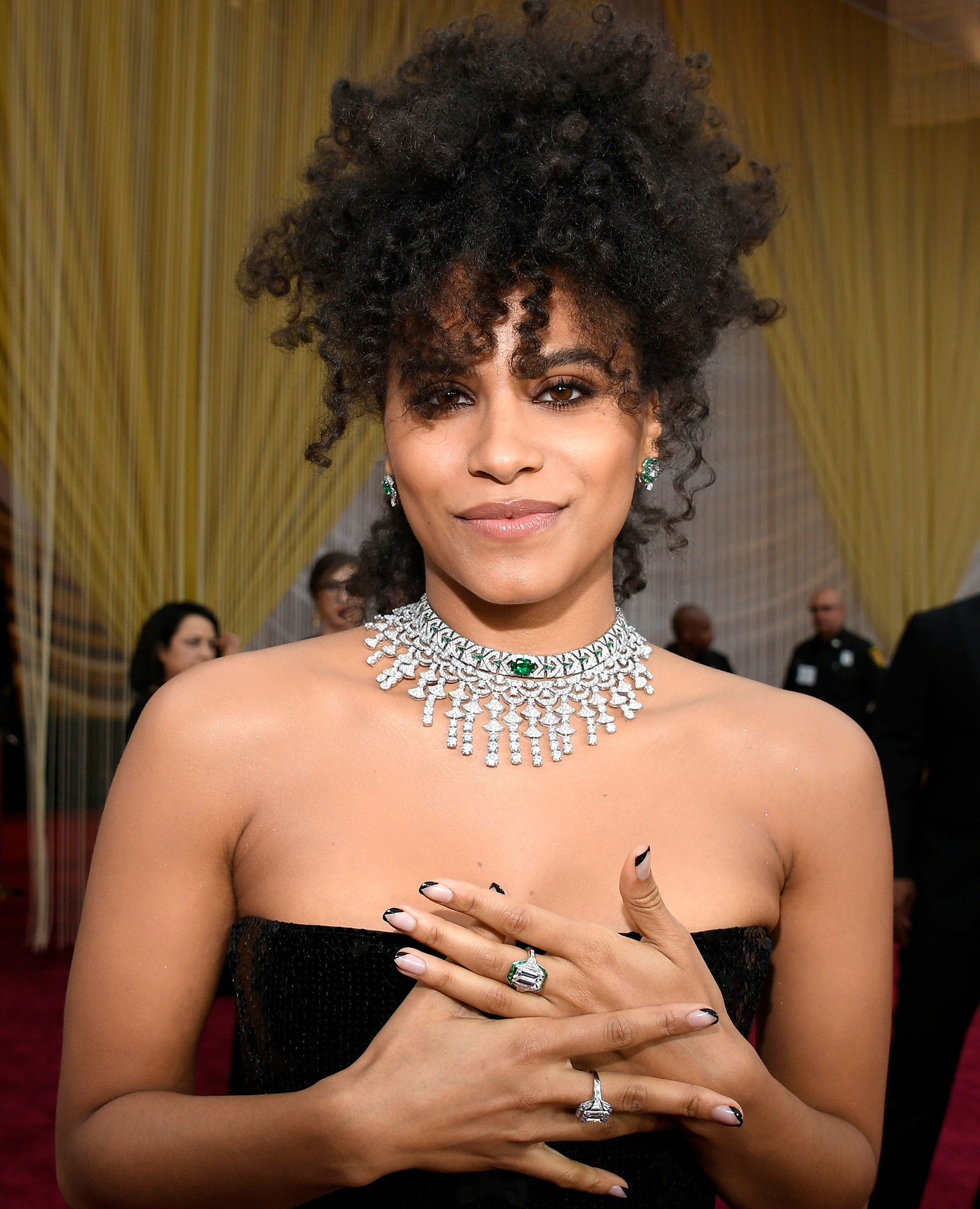 ارتدت الممثلة زازي بيتز قلادة بولغاري “Diva’s Dream” والتي تضم 120 قيراطًا من الماس.