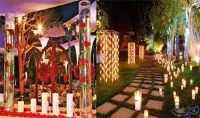 - الشموع المعلقة في حفلات الزفاف المفتوحة: يمكنك القيام باستخدام الشموع لتصبح معلقة بطرق متعددة، وذلك من خلال وضعها داخل برطمان، أو فانوس، أو حتى كأس يتم تعليقه بشكل غير تقليدي، والذي يمكن أن يعطي أجواء راقية ومميزة للغاية.