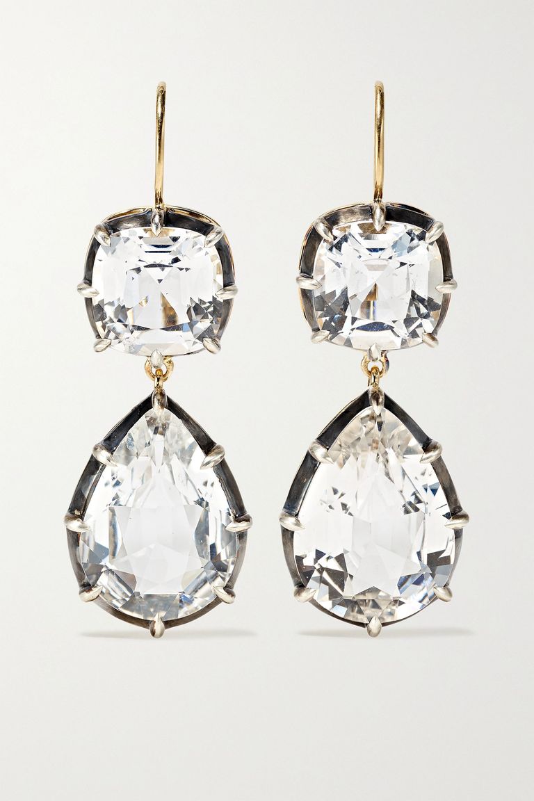لا شئ أفضل من النمط الكلاسيكي للاقراط، ف هذين القرطين المكونان من قطع الماسية الشفافة يضفيان جمال وأنوثة على مظهركِ كعروس لعام 2020.