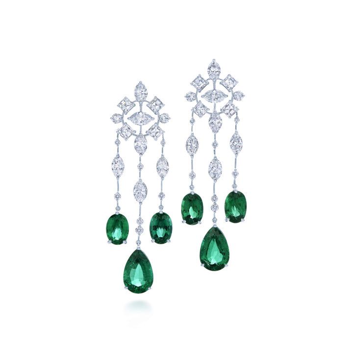 من القطع المميزة التي تضفي عليك جمالًا وتزيد من وهج إطلالتك كعروس هذا العام هي الأقراط البيضاء المقرونة بالأحجار الكريمة الملونة باللون الأخضر.