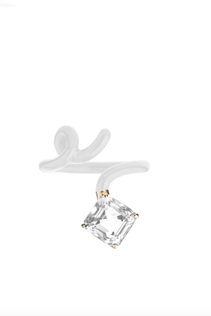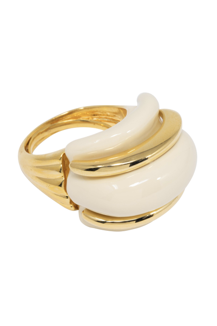 هذه الصيحة من الخواتم من تصميم كينيث جاي لين وهي مصنوعة من الذهب واللؤلؤ المزيف.