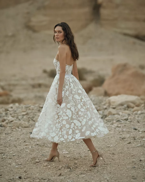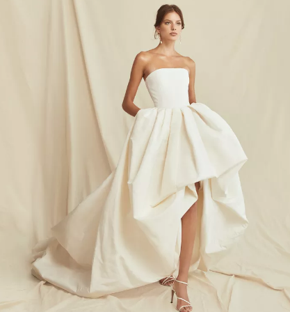إذا كنتِ مترددة في الاختيار ما بين فستان قصير أو طويل لزفافك، يمكنك بكل بساطة اختيار تصميم يجمع بين الاثنين، وهو تصميم "الهاي لوو" القصير من الأمام وطويل من الخلف.