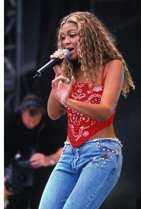 اعتمدت بيونسيه الاسكارف الاحمر مع بنطال جينز أزرق في أحد عروضها المسرحية، وبدت بي في غاية الاناقة.