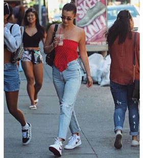 ارتدت بيلا حديد خلال قيامها بجولة سريعة لتناول القهوة مرتدية سكارف قرمزيًا وجينز وحذاء رياضي مميز.