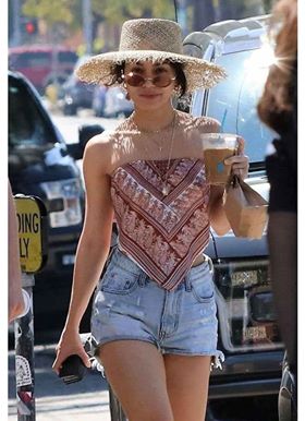 اعتمدت هنا نجمة هاي سكول ميوزيكال فانيسا هادجن علي سكاف توب ونسقته بطريقة مختلفة مع شورت جينز باللون الأزرق الفاتح.