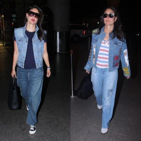 استطعت السيدة خان هنا تنسيق الجينز مع الجينز، فقد ارتدت كارينا بنطال جينز أزرق وجاكيت أزرق ونسقت معه حذاء رياضي مميز.