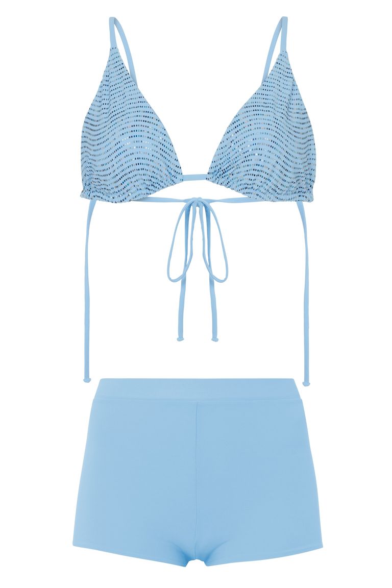 لإضافة لمسة أكثر جاذبية ولكن دون تكلف أو مبالغة، يمكنك اختيار ملابس السباحة ذات تصميم الطيات، فهي رائجة للغاية طوال ربيع وصيف هذا العام وجذابة.