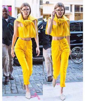 ظهرت جيجي حديد بإطلالة نهارية باللون الأصفر الجرئ وبدت السيدة حديد في غاية الجمال والبساطة.