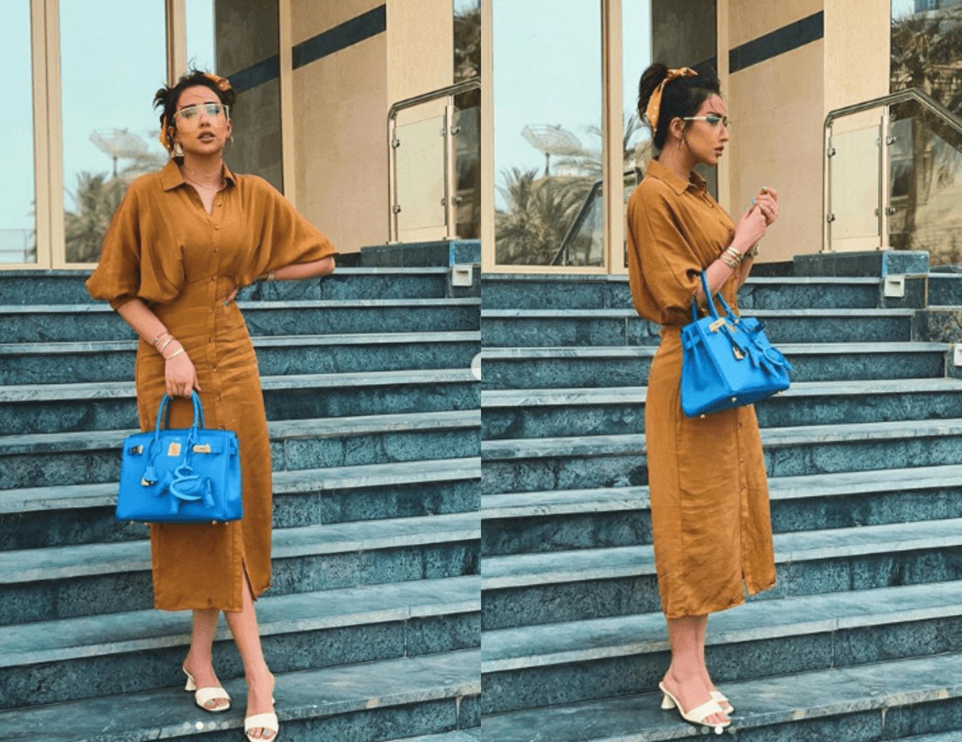 إذا كنتي من محبي الفساتين الواسعة، الفاشينيستا الكويتية خلود أطلت بفستان واسع بألوان ونقشات غريبة ونسقت معه حذاء مفتوح