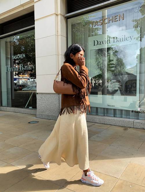 هذه الموضة يغلب عليها طابع الثمانينات، وتلائم المحجبات، ارتدي فستان قطني او من الكتان باللون الأبيض أو الكريمي مع سترة مبطنة من الجلد المدموغ باللون البني وزوج من الأحذية الرياضية ويمكنكِ وضع حجاب بنقشة جلد النمر لإكمال إطلالتك كمحجبة.