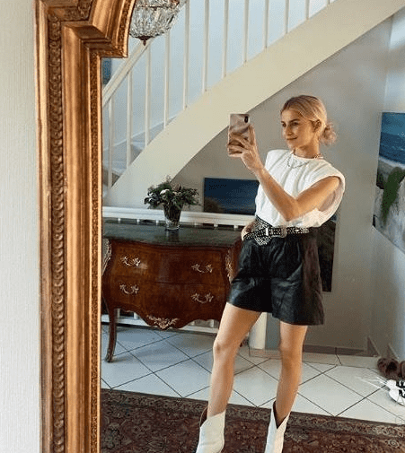 الشورت الجلدي الأسود بدا رائعاً جدّاً، كما نسّقته Carodaur مع جزمة رعاة البقر البيضاء أو كما ارتدته نيجين ميرسالي مع كاب أسود وقميص أبيض