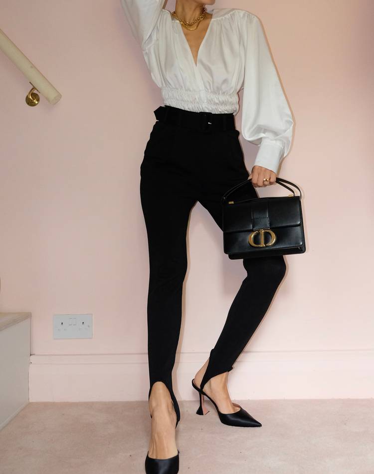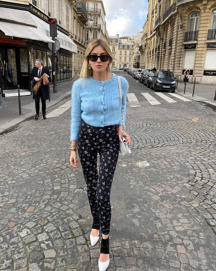 بدلا من السادة، أكملي اطلالتك بليغينغ مزين بنقشة من اختيارك مثل الكاروهات أو الزهور أو لوجو ماركتك المفضلة وغيره، كما يمكنك اختياره بألوان مختلفة حسب رغبتك بجانب الأسود.