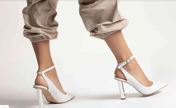 يُباع بـ79.99 دولارًا، ويأتي الحذاء باللون الكلاسيكي الأبيض بكعب مدبب وحزام عند الكاحل.