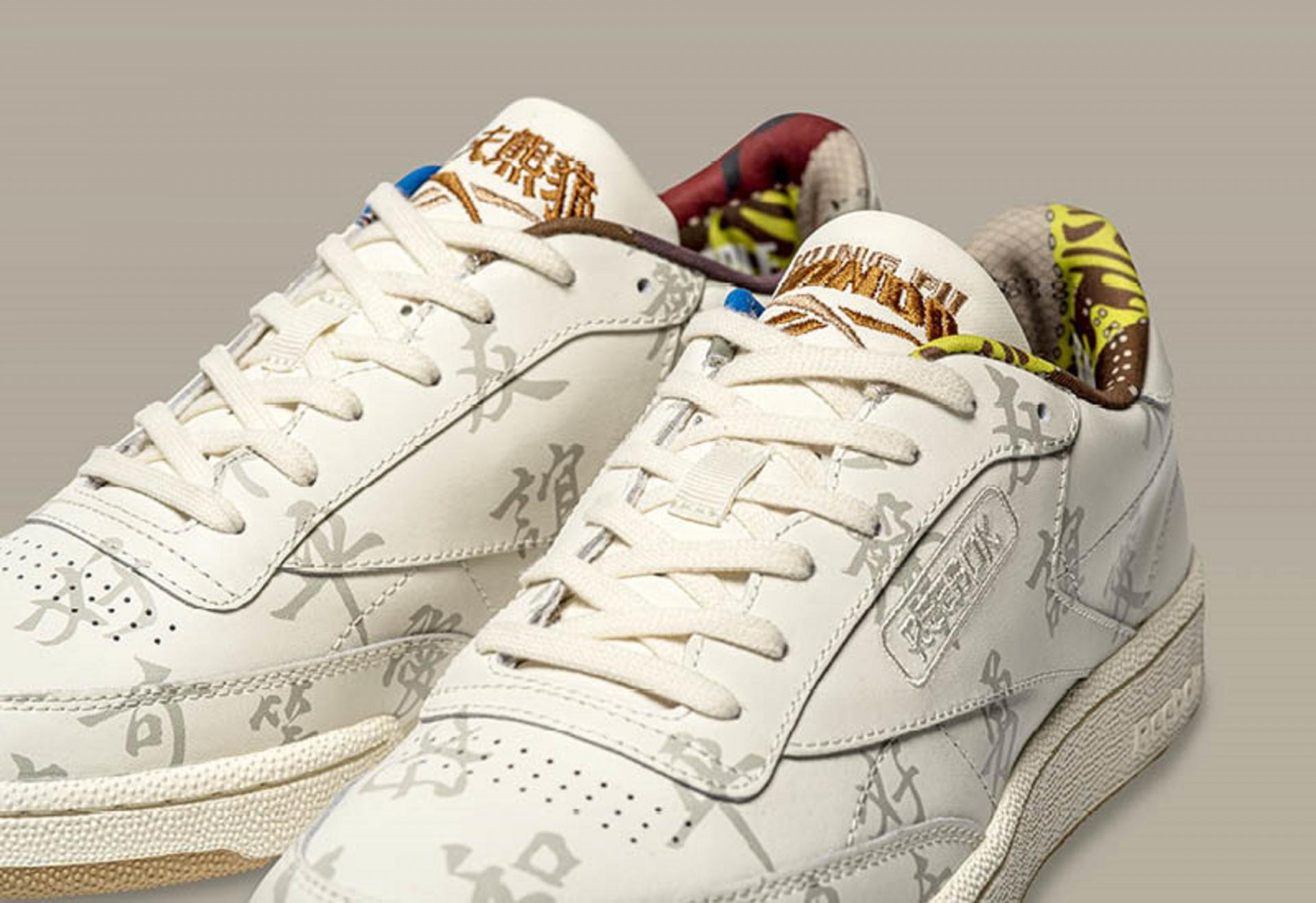 يتميز حذاء Club C بألوانه المتباينة والمستوحاة من أزياء المحاربين الستة عبر أنواع مختلفة من المواد والألوان؛ حيث ترمز مقدمة الحذاء إلى سروال Crane وتعكس المنطقة المحيطة بأصابع القدمين اللونين الأبيض والأسود في إشارة إلى فرو Po، فيما تستحضر زخارف الأوراق تطريزات ثوب Tigress ويوحي الكعب بسروال Po المرقع. وترمز ثقوب أربطة الحذاء إلى مشدات الأقدام التي يرتديها المحاربون، ولسان الحذاء لهيكل Mantis الخارجي، كما تستحضر ألوان الكعب فرو Monkey، ويأتي لون شعار ريبوك مستلهماً من أصفاد معصم Monkey، فيما يزدان الشريط الخلفي بألوان جلد Viper، وبطانة ياقة الحذاء بتقليمة حزام Po. ويبرز شعار ريبوك Reebok Kanji التقليدي على كعب الحذاء. يتوافر الحذاء بمقاسات مناسبة للكبار.