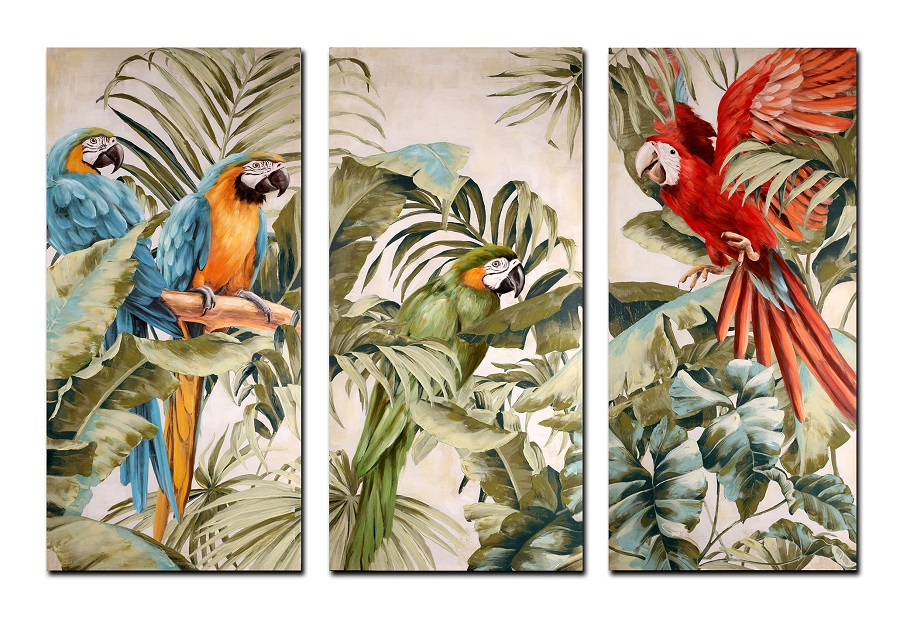 3-Frame Tropical Parrot Wall-Décor