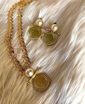 الإكسسوار النقدى المميز بلونه الذهبي ممزوج بقطع من اللولى، أصبح دارج هذا الموسم بشكل كبير، يمكنك إرتدائها على كافة الملابس من التيشرت إلى البليزر.