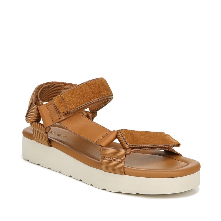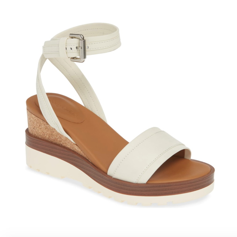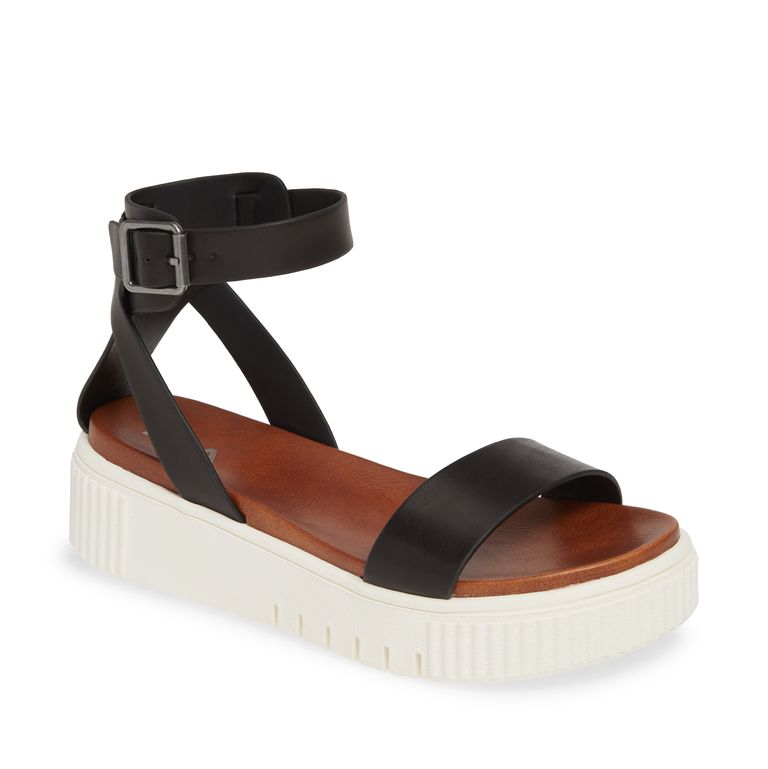 أما صندل Lunna برباط الكاحل؛ فهو من الجلد البني الأنيق الرياضي، ووسادة قدم مبطنة، ونعل أبيض، وصندل Steve Madden Bandi Wedge له تصميم جريء سيضيف قليل من التوهج على خزانة ملابسك، وله وسادة قدم مبطنة لراحة قدميك.