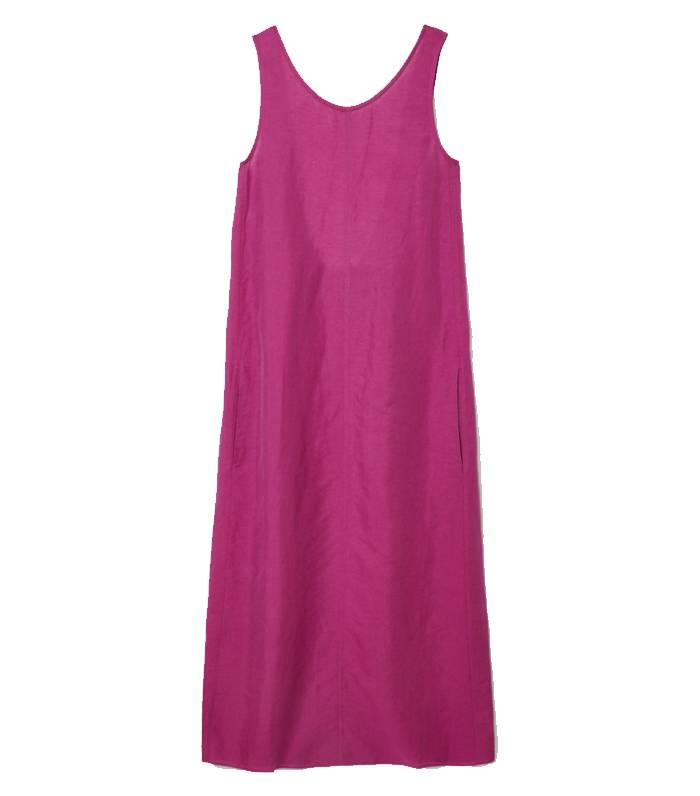 يمكنكِ إرتداء فستان قطني باللون الفوشيا متوسط الطول على سروال جينز مع زوج من الأحذية الرياضية وكارديجان أبيض مفتوح وأذا كنتِ محجبة يمكنكِ إضافة حجاب منقوش باللونين الأبيض والفوشيا أو حجاب بسيط باللون الأبيض.