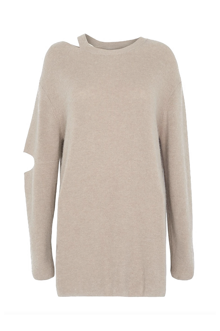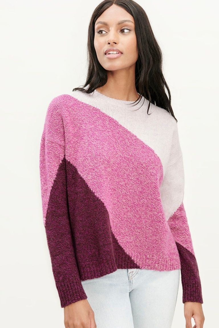 من الكنزات الصوفية المميزة هي الكنزات الطويلة والمضلعة مع أكمام جانبية مقصوصة يمكنكِ ارتدائها مع سروال جينز و أحذية رياضية بيضاء وحجاب كشمير باللون الفاتح.