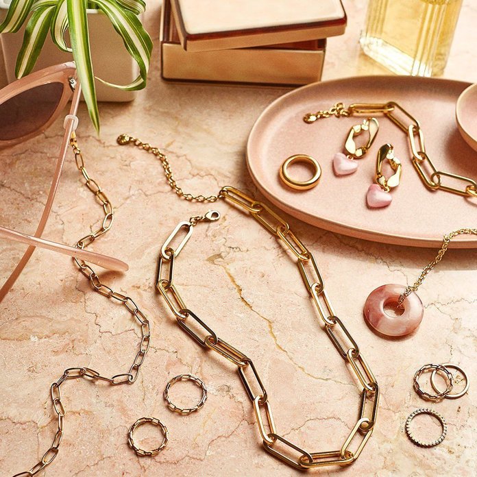 وتم تصميم القلادات الذهبية على شكل متشابك، وهي متوفرة بعدة أشكال، وبسعر 48 دولارًا أمريكيًا فقط ، لذا فهي تعد بديل ميسور التكلفة للعلامات التجارية الأخرى المحبوبة للمشاهير.