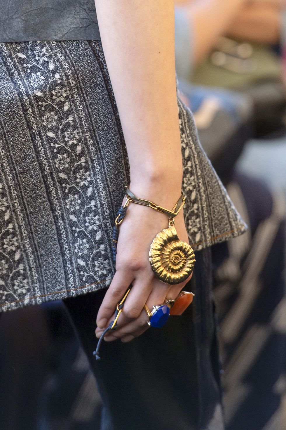 هذه الموضة لا تبلي ويتم إضافة الجديد إليها مع مرور الوقت فهناك الأسورة الصدفية باللون الذهبي والتي تستطيعين إرتداؤها مع مجموعة من الخواتم الضخمة وتستطيعين ارتداؤها خلال النهار.