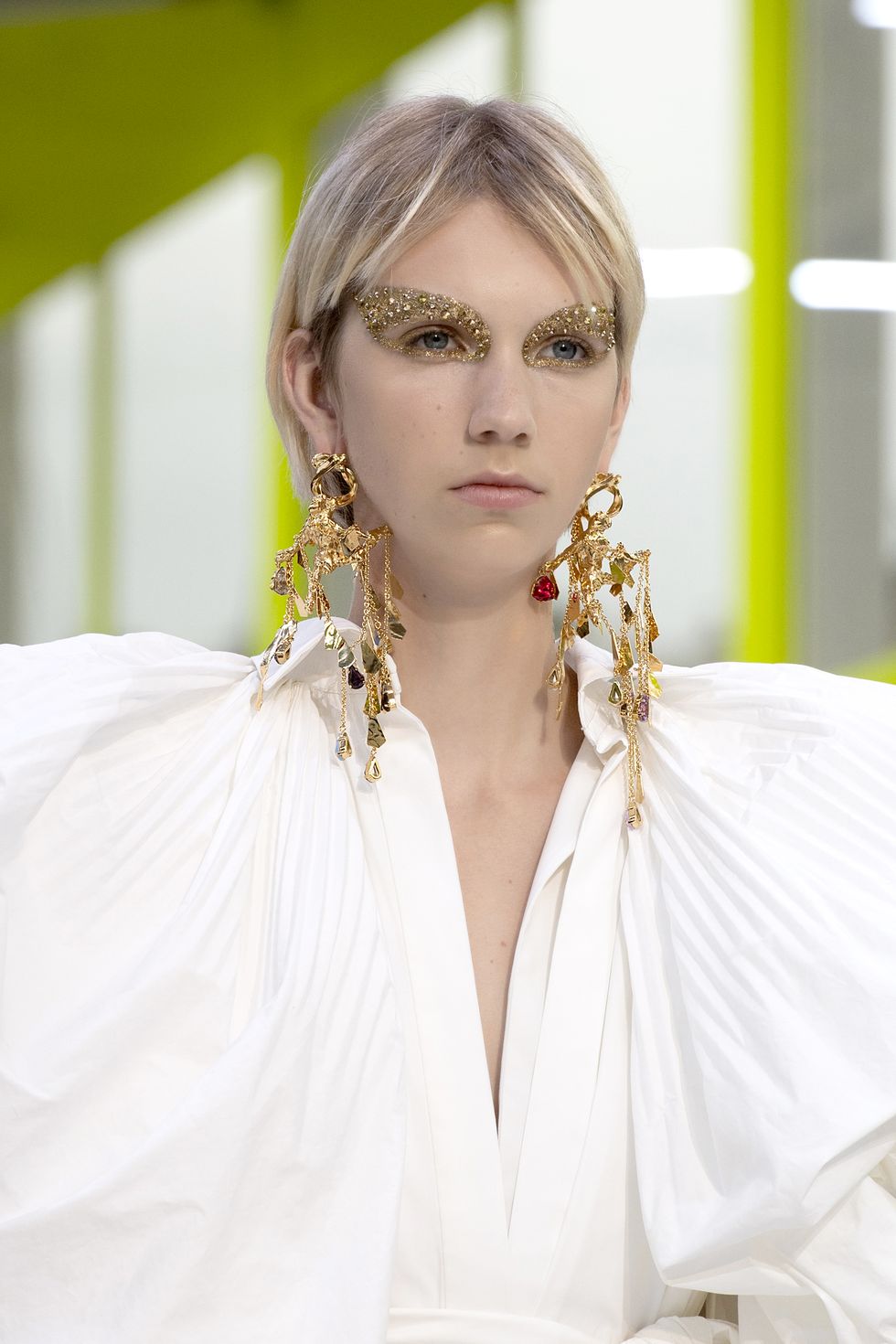 على الرغم من ان الأقراط الطويلة التي تصل للكتفين والضخمة لا ترتبط بالطابع الرومانسي للربيع إلا إنها ستلقى رواجًا هذا العام بسبب احتوائها على العديد من الأحجار الملونة الأنيقة والتي تتماشى مع الوان الربيع المبهجة.
