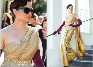 السارى الغير تقليدي، كانت واحدة من أكثر الإطلالات شهرة للممثلة! فقد اعتمدت كانجانا في مهرجان كان 2019، على السار الغير تقليدي مع بلوزة مشد وزوج من قفازات الأوبرا واعتمدت الشعر المموج.
