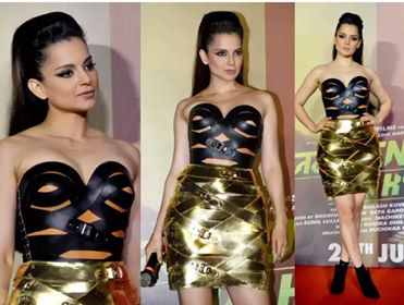 فستان غريب باللون الاسود والذهبي، فاجأت الممثلة الجميع بزيها المستوحى من عبودية مارينا. ارتدت كانجانا بلوزة بدون أكتاف مع أحزمة من الجلد الأسود وتنورة ذهبية.