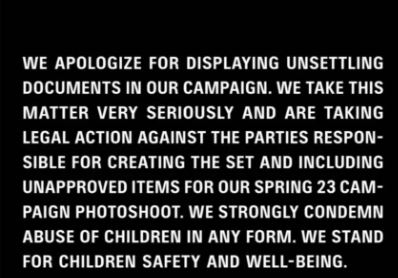 نشرت العلامة التجارية عبر الموقع الرسمي لها صورة حملت اسم كتاب Michael Borremans، المثير للجدل أنه اسم فنان عُرف بإثارة الجدل بسبب رسمه صور أطفال عراة مع طقوس للعبودية، وهو ما أعاد اثارة الجدل