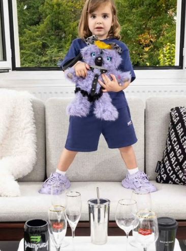 في إحدى الصور ظهرت طفلة وهي تمسك دمية "دب محشو" ترتدي حزام صدر باللون الأسود جلدي، يرمز هذا الحزام إلى العبودية ويستخدم بشكل كبير لدى الأشخاص الذين يعانون من اضطراب المازوخية والسادية.