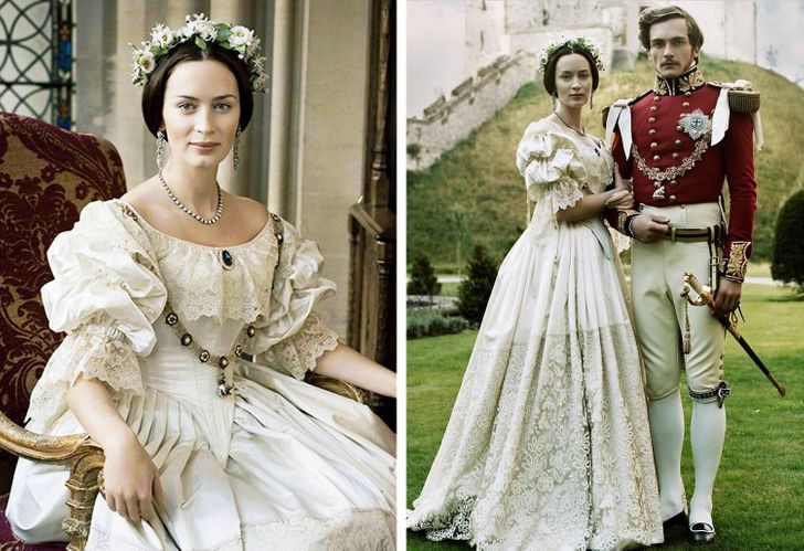لعبت الممثلة إيميلي بلنت دور الملكة فيكتوريا في فيلم The Young Victoria الذي عرض في السينمات لأول مرة في عام 2009 وظل فستان الزفاف الذي ارتدته محفورًا في ذاكرة الأزياء وعلى الرغم من طرازه القديم إلا أنه مازال موضة رائجة ويلاقي اعجاب الفتيات.