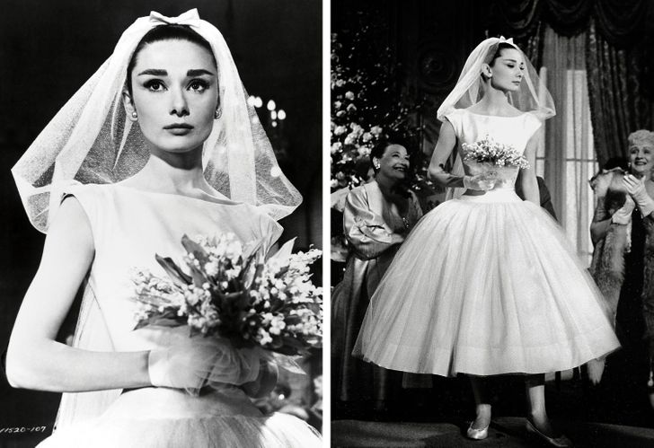 ظهرت الممثلة أودري هيبورن بفستان زفاف من كلاسيكيات الخمسينات من مجموعة جيفينشي وكان تصميم الفستان فريد وفي غاية الاناقة والجمال.