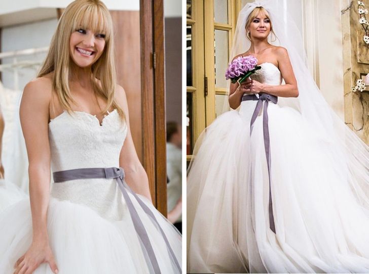 ارتدت كيت هادسون فستان زفاف مميز بشريطة ارجوانية من مجموعة فيرا وانغ ومازال هذا الفستان خيارًا رائجًا بين الفتيات المقبلات على الزواج.