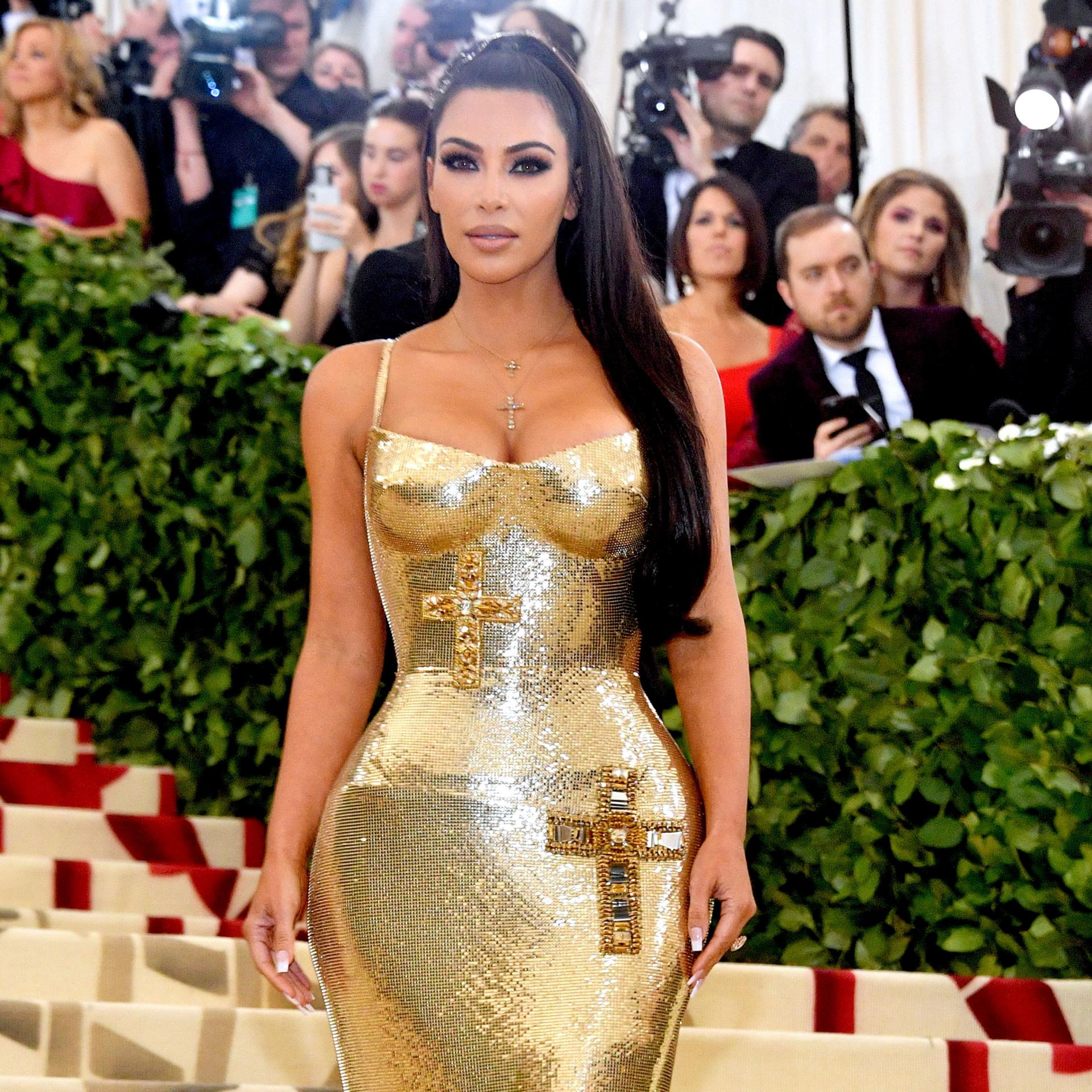 ظهرت كيم كارداشيان مميزة للغاية بإطلالة باللون الذهبي، خلال حضورها حفل الـMet Gala.