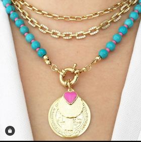 قلادة ثلاثة أدوار مع طبقة ملونه وقطعة نقدية مميزة، هذه القلادة هي قطة فريدة تسطيع تغيير مظهرك من عادى إلى أنيق للغاية.