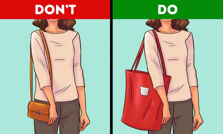 ابتعدي عن الحقائب كبيرة الحجم او حقائب الكتف الصغيرة، ما يناسبكِ هو حقائب الكروس وحقائب الحزام والكلتش.