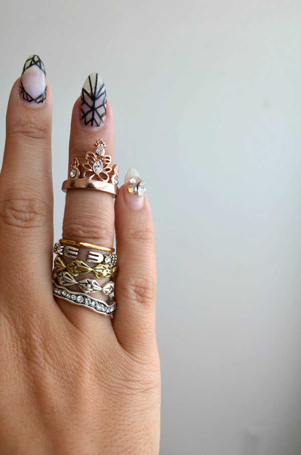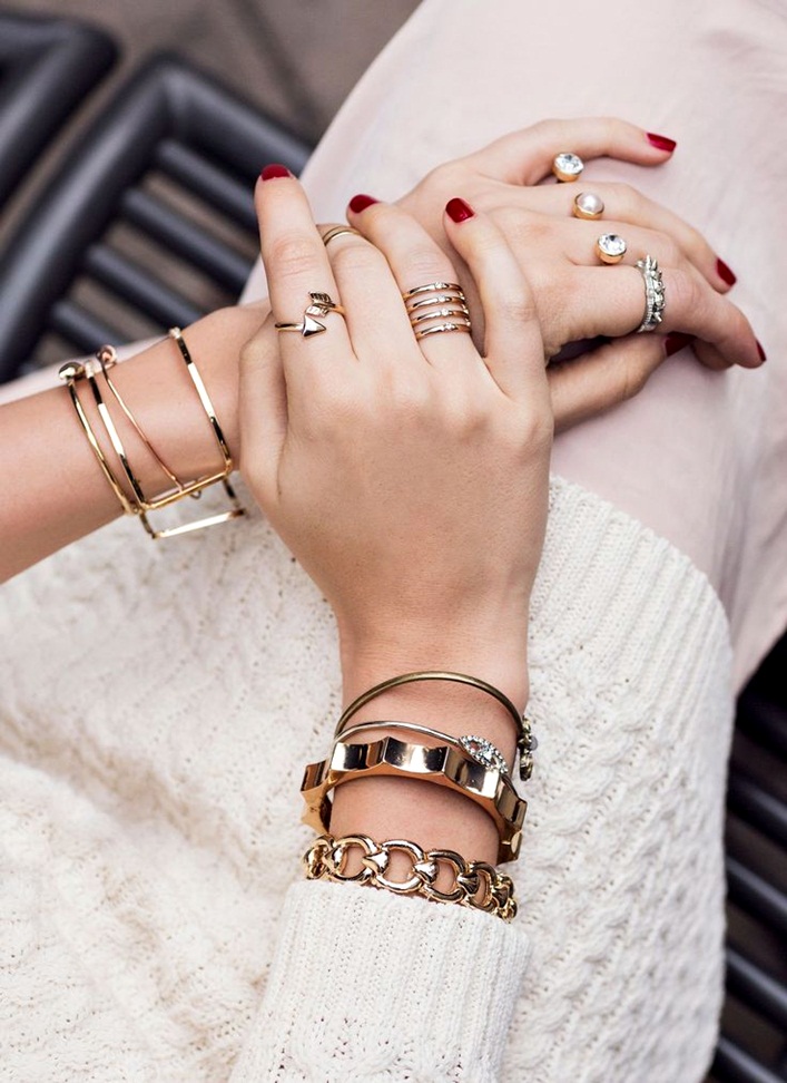 وعليكِ أن تتذكري ان موضة الخواتم المتعددة لا تعني إرتداء عدة خواتم في اصبع واحد فقط ولكن هو عبارة عن توزيع وتنسيق عدة خواتم على جميع الأصابع بشكل أنيق ويواكب الموضة بعيدًا عن الإبتذال.