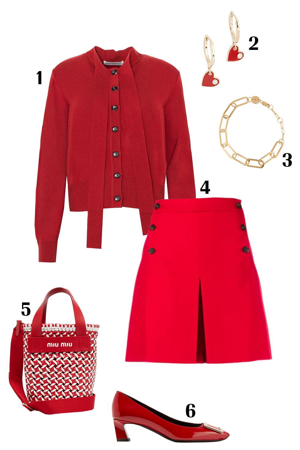 لا يوجد لون افضل من اللون الأحمر لبدء يوم عمل ملئ بالكثير من المهام، يمكنكِ إرتداء قميص باللون الأحمر الغامق مع تنورة بدرجة فاتحة من اللون الأحمر وحقيبة كاجوال تجمع بين اللونين الأحمر والأبيض ولإضافة الأناقة على الإطلالة تستطيعِ ارتداء أقراط ذهبية مطعمة باللون الأحمر وسوار ذهبي وحذاء أحمر كلاسيكي لامع.