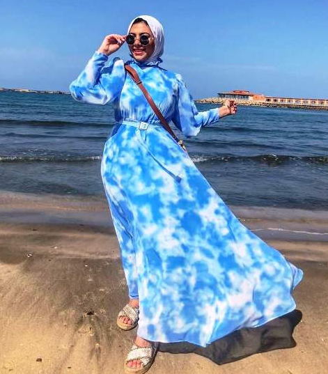 من النقشات المسيطرة هذا العام، وبجانب الأسلوب التقليدي للنقشة التي تجمع بين أكثر من لون، تتميز صيحة فساتين ربيع هذا العام بنقشة التاي داي لنفس اللون ولكن بتباين، مثل هذا الفستان الذي يعكس لون السماء.