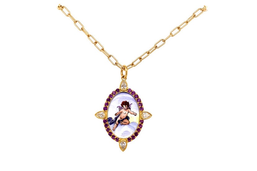 قلادة بشعار برج الدلو من Brooke Gregson، بسلسلة 44 سم من الذهب والماس، ومعلق بها الشعار.