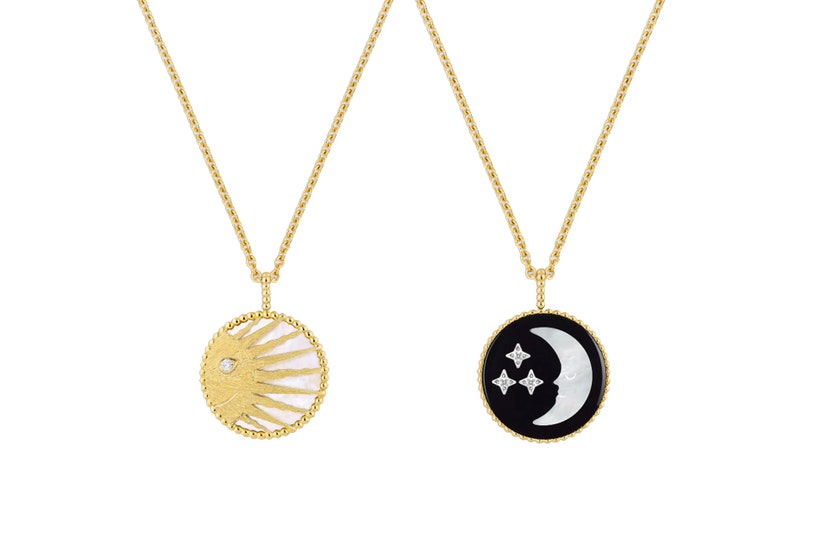 ميدالية روز سيليست القابلة للانعكاس من ديور، من الذهب الأصفر والأبيض مع الألماس، والأونيكس، واللؤلؤ وسلسلة 85 سم.