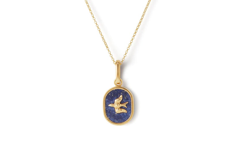 قلادة ذهب L'Oiseau من Motley x Estelle Dévé، من الفيرميل الذهبي واللازورد بسلسلة 47.5 سم.