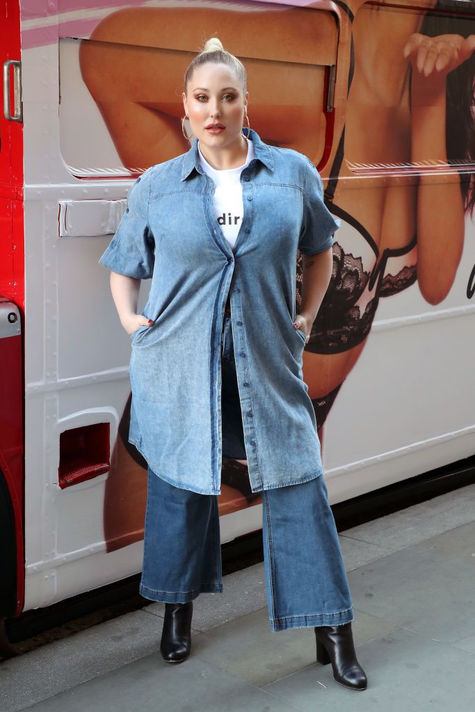 يعد مظهر الدنيم بسيط وأنيق، والتي تتكون من سترة من الجينز طويلة وبنطلون واسع ويمكن ارتداؤها مع الجوارب اللطيفة أو الأحذية العصرية